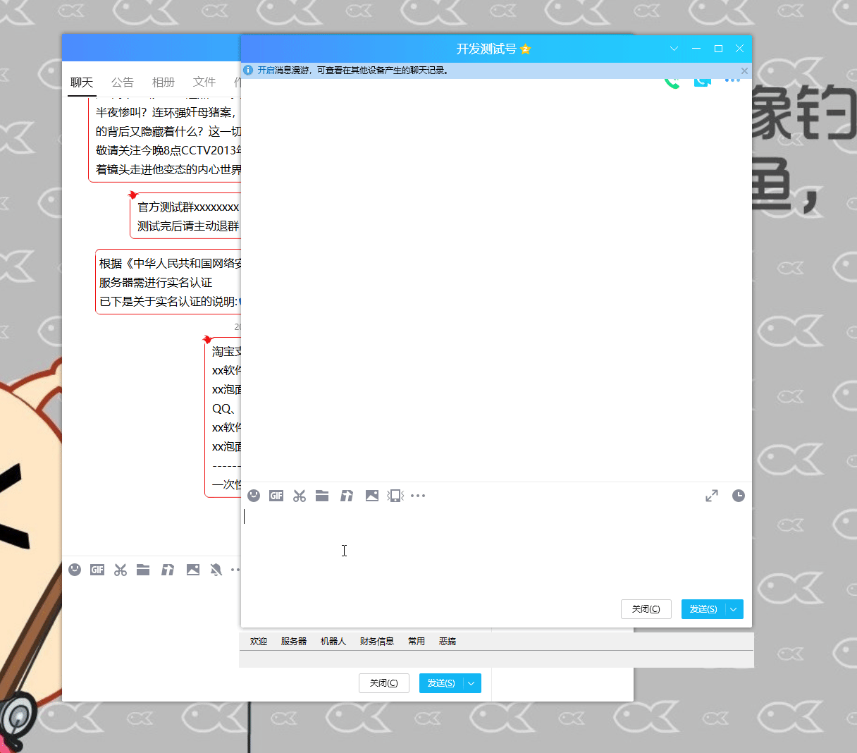 当前兼容性内测中,仅支持QQ文本发送 ,以下功能陆续增加中