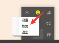 右击右下角图标,选择恢复
